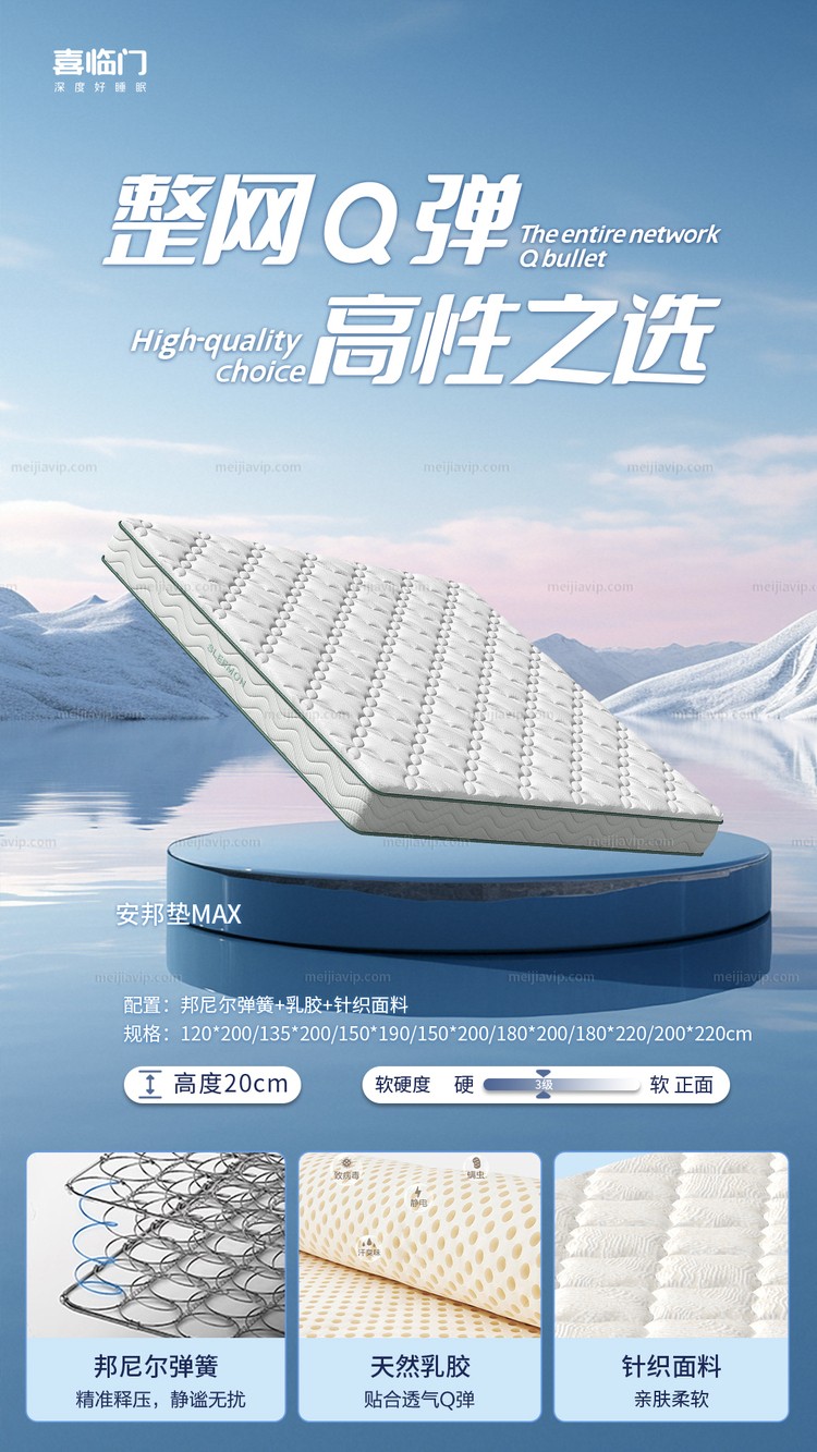¥3999.00【现货】喜临门晚卿系列安邦垫MAX20cm床垫舒适天然Q弹乳胶精准护脊承托邦尼尔弹簧1.8X2.0米抗菌防螨针织面料床垫
