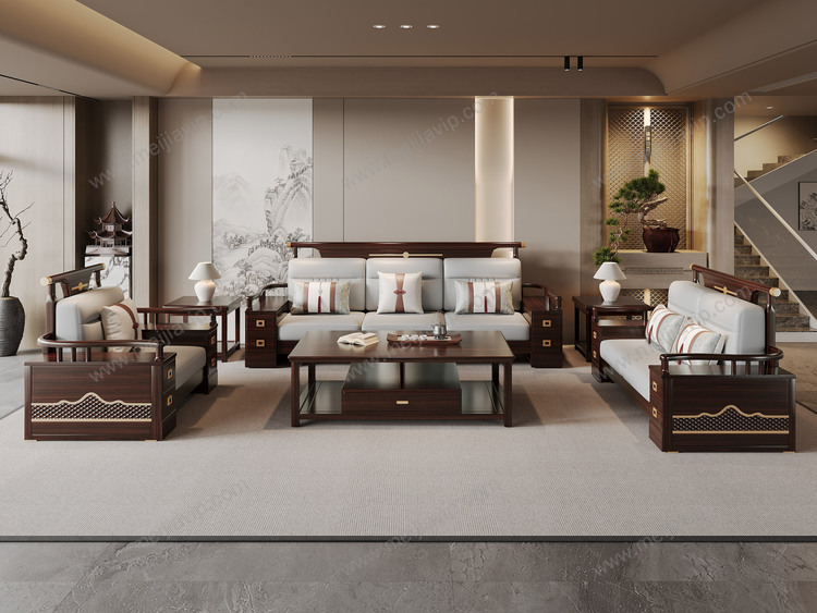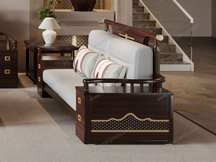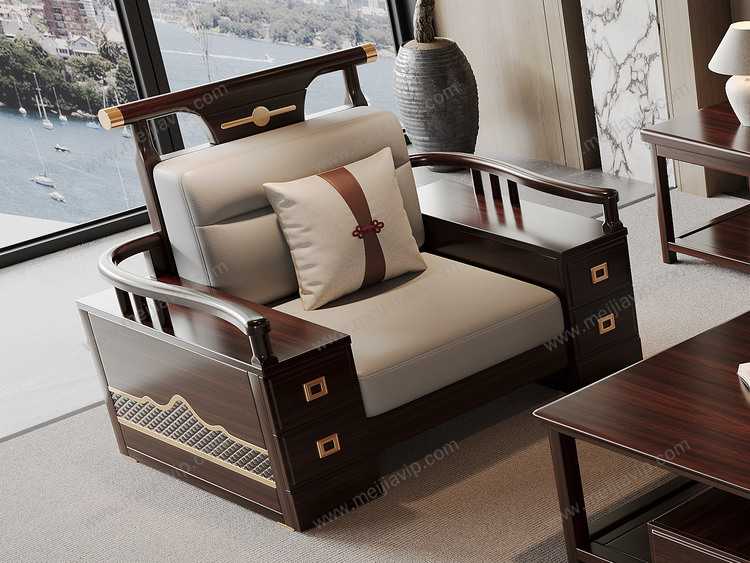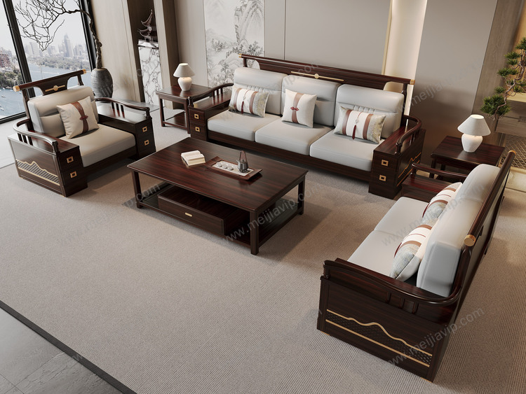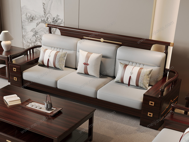 ¥10499.00云柚居新中式进口实木沙发多抽屉储物扶手设计细腻舒适猫抓皮竖线拉点饱满靠背雕花工艺沙发组合单人位+双人位+三人位