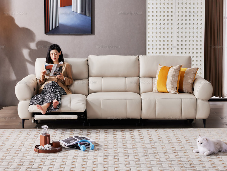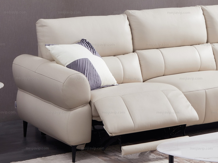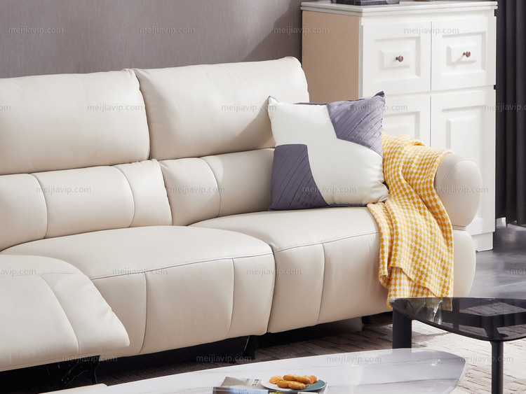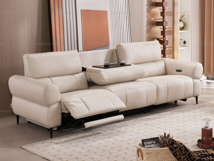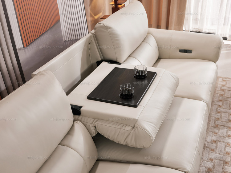 【4099】芝华仕旗舰款 现代简约 零靠墙真皮电动功能沙发 多功能翻盖茶几 靠包茶台随心切换 巴西进口头层牛皮 米白色 右功能三人位沙发