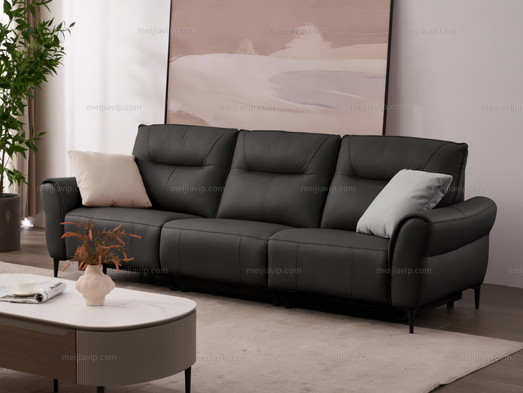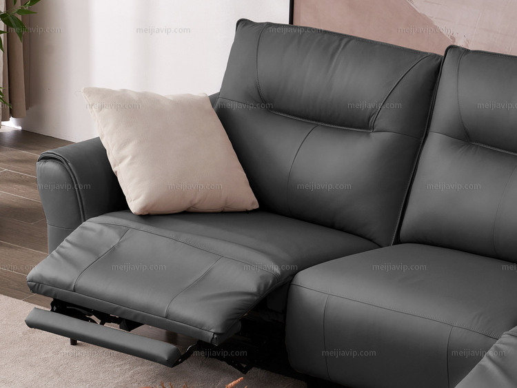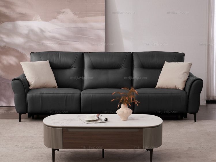 【4199】芝华仕 旗舰款 现代简约 全面升级零靠墙电动功能位落日系列 头层牛皮功能沙发 甄选进口头层黄牛皮 仿花瓣式流线靠包 轻盈蓬松海绵 暗夜黑 右功能位三人沙发(此产品有短途物流费)(不含抱枕)