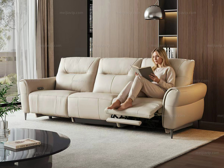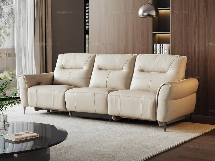 【4199】芝华仕 旗舰款 现代简约 全面升级零靠墙电动功能位落日系列 头层牛皮功能沙发 甄选进口头层黄牛皮 仿花瓣式流线靠包 轻盈蓬松海绵 象牙白 左功能位三人沙发(此产品有短途物流费)