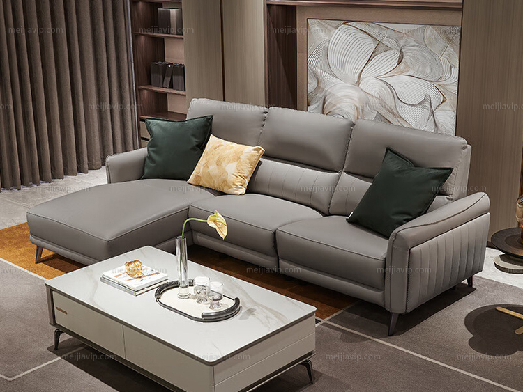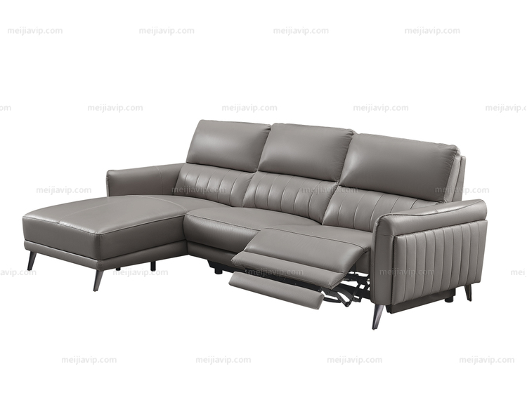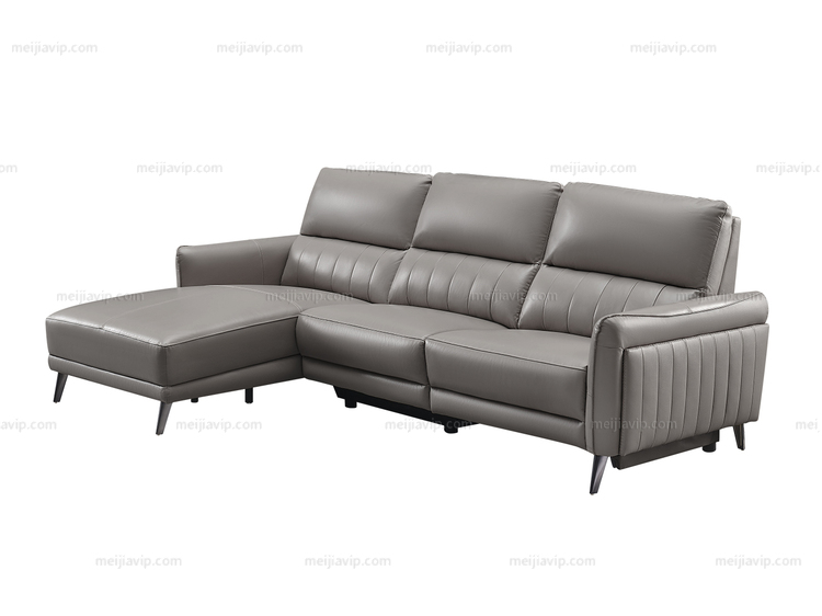 【4199】芝华仕 旗舰款 现代简约 时尚系列 真皮电动功能沙发 进口头层黄牛皮+电动可调节功能位 多维人机设计分段式靠背 银灰色 转角沙发 反向曲尺(3+右贵妃)(此款不含抱枕)(此产品有短途物流费)