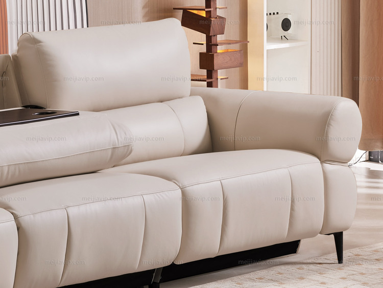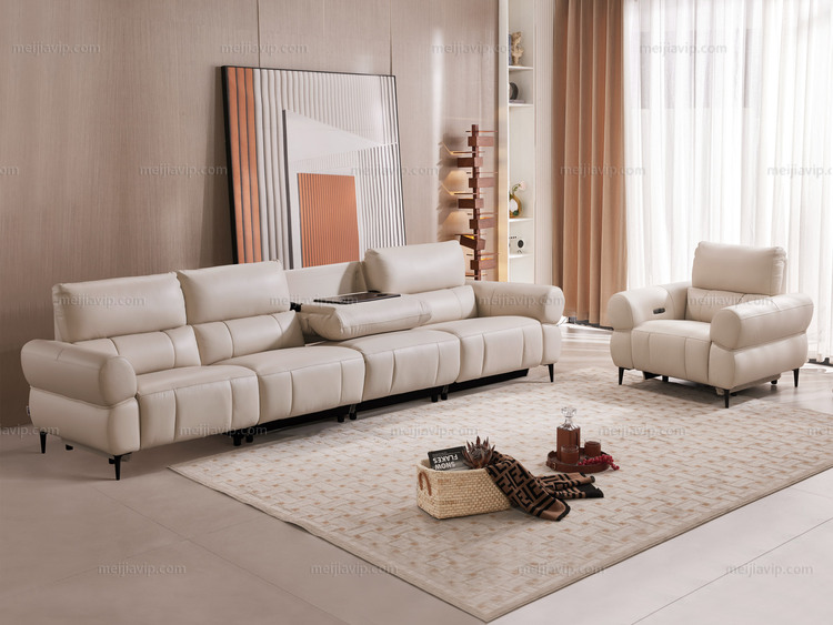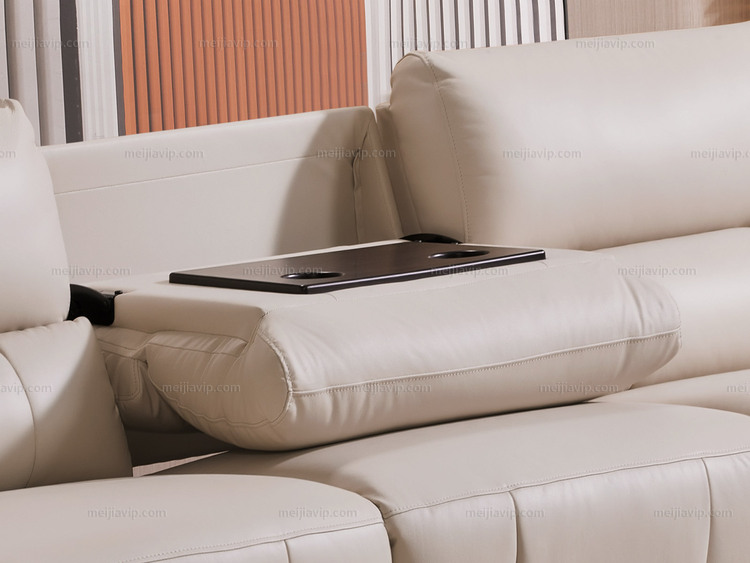 【5499】芝华仕旗舰款 现代简约 零靠墙真皮电动功能沙发 多功能翻盖茶几 靠包茶台随心切换 巴西进口头层牛皮 米白色 右功能四人位+单人位沙发组合(此产品有短途物流费)