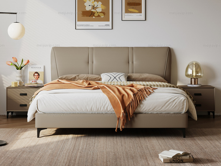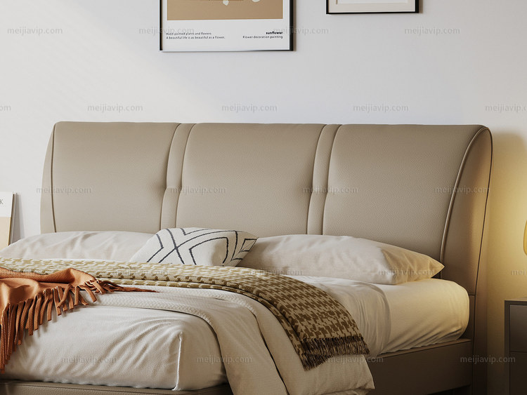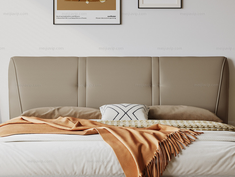 【949】歌迪 极简风格 亲肤细腻仿真皮 优雅流畅拉线工艺人体工学倾角 一体式宽大曲面软靠 饱满柔弹倚靠舒适沉浸式释压体验 橙棕色 1.82.0米床(搭配10公分松木排骨架)