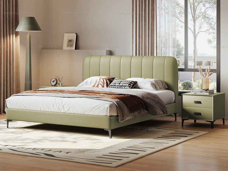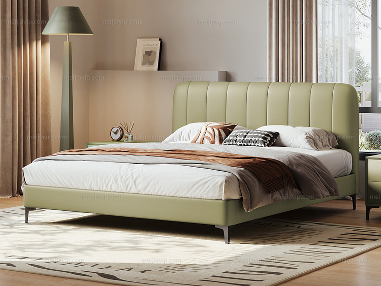 【990】歌迪 极简风格 抗皱耐撕拉仿真皮 高密度高回弹海绵俄罗斯进口落叶松实木框架 1.82.0米 米绿色 床(搭配10公分松木排骨架)
