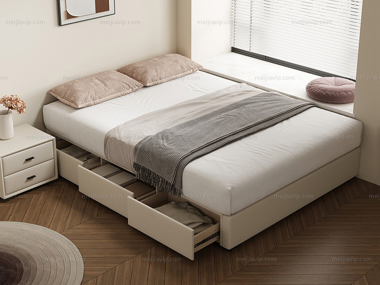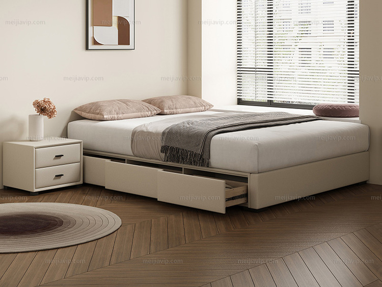【999】歌迪 极简风格 欧姆真皮床 高定头层黄牛皮 绵软轻盈高级羽绒+舒适回弹高密度海绵黄金配比宽大柔软床屏 蓬松软弹靠包全方位释压 云端靠感 齐边设计节省空间 1.82.0米真皮床(搭配10公分松木排骨架)