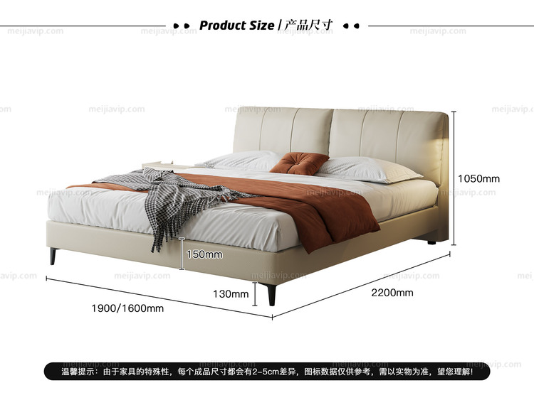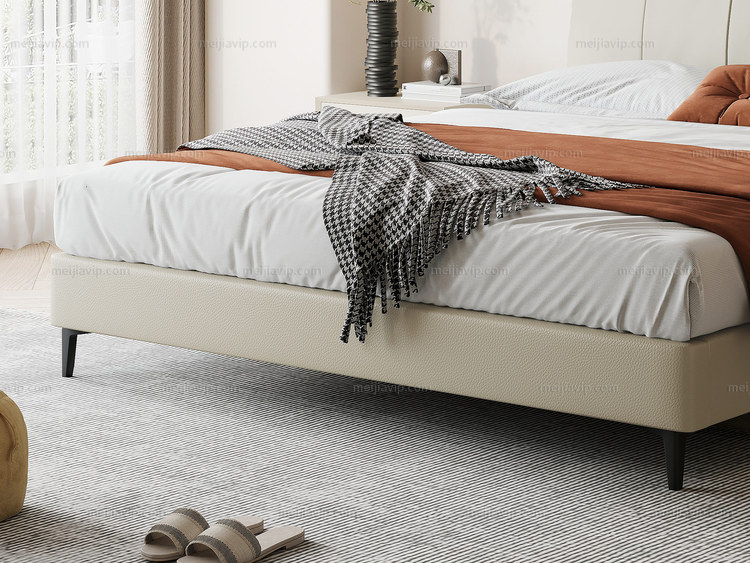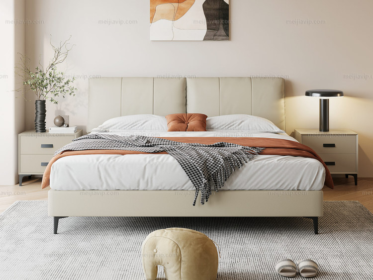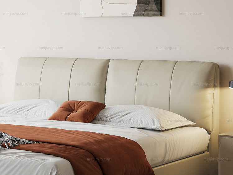 【1099】歌迪 极简风格 进口头层黄牛皮 柔软温润 挺阔饱满羽绒双靠包 分体设计自由倚靠 绵柔软糯弯弧舒适支撑腰背 清爽利落齐边设计 米黄色 1.82.0米床(搭配10公分松木排冒架)