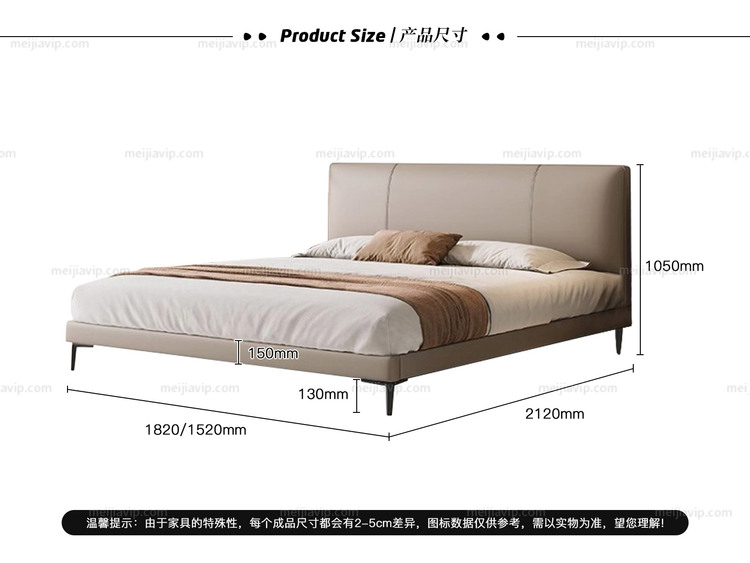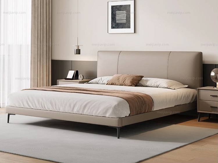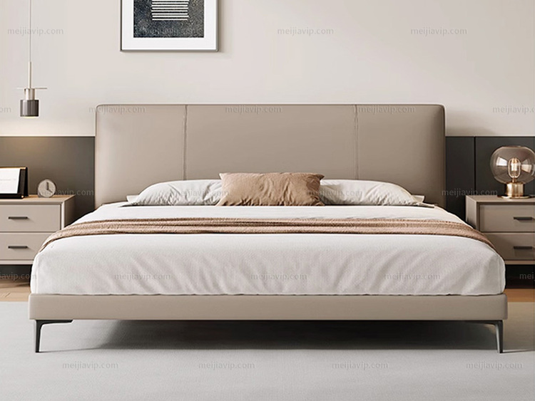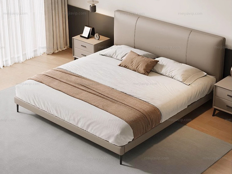 【1149】歌迪 极简风格 高定头层黄牛皮 细腻柔韧 轻薄三分床头 高密度海绵柔软舒适 俄罗斯落叶松实木框架1.82.0米床(搭配10公分松木排骨架)