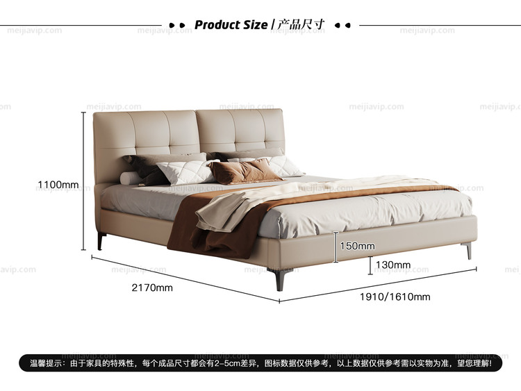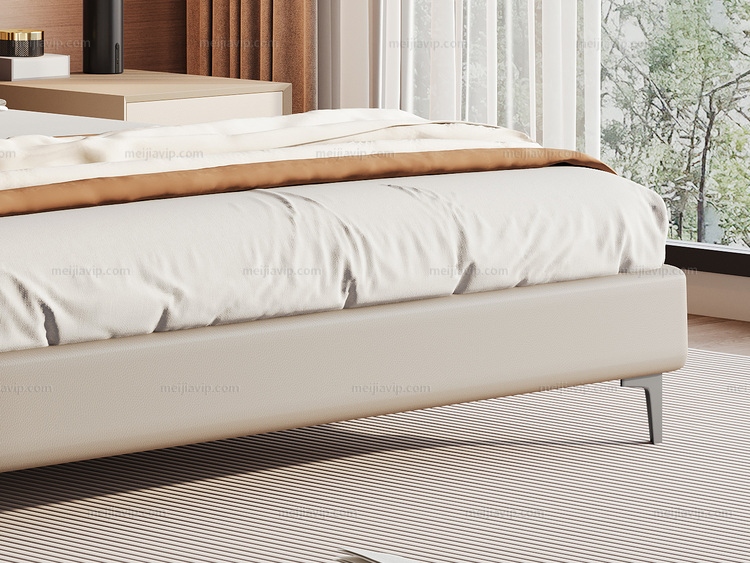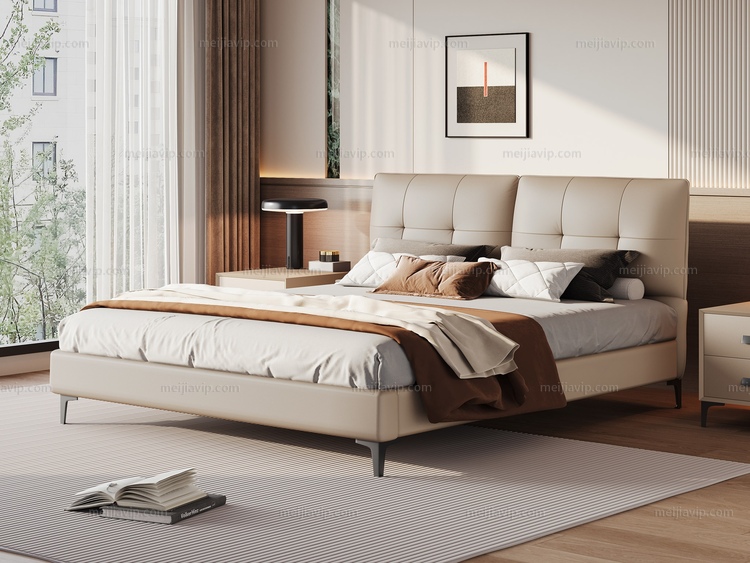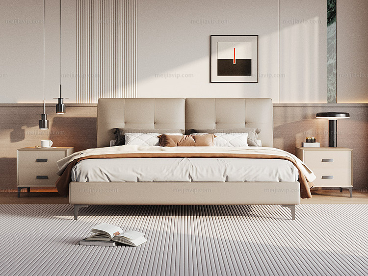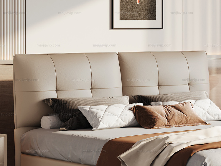 【1169】歌迪 极简风格 高定头层黄牛皮 高密度Q弹海绵双靠包 紧致有型柔弹释压倚靠舒适 井字拉点不跑位 精选优质俄罗斯落叶松实木框架 1.82.0米真皮床(搭配10公分松木排骨架)