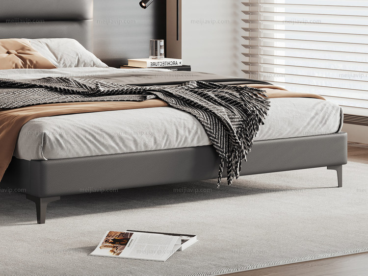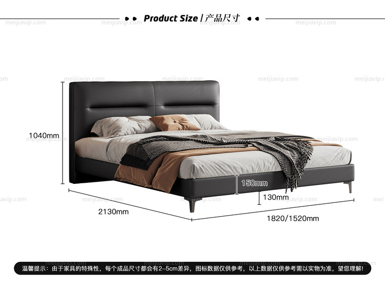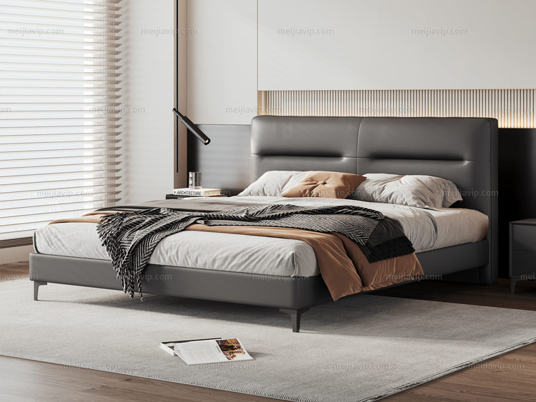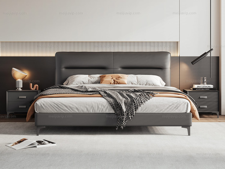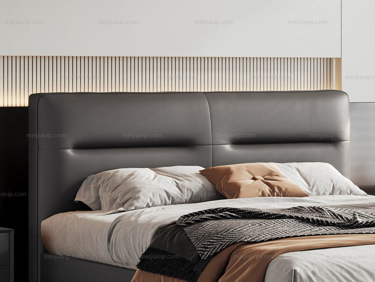 【1169】歌迪 极简风格 高定头层黄牛皮 立体方块拉点工艺黄金分段式设计撑腰软靠 舒适倚靠分区承托 5A级进口俄罗斯落叶松实木框架 1.82.0米真皮床(搭配10公分松木排骨架)