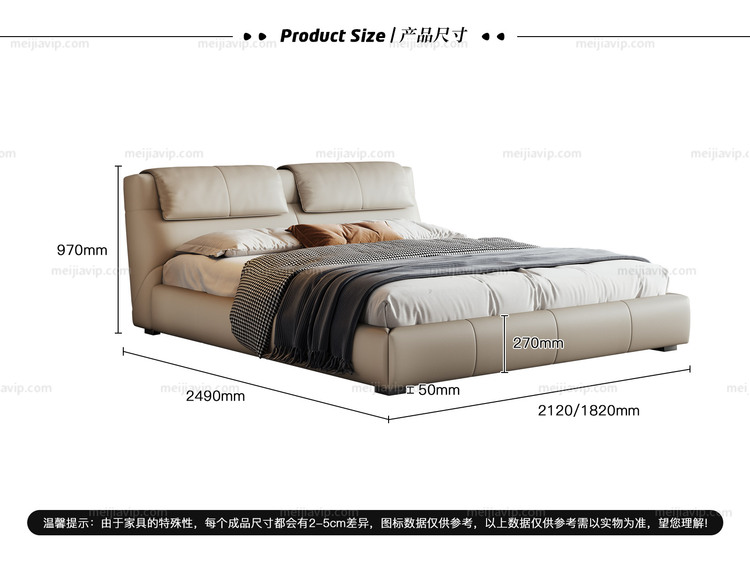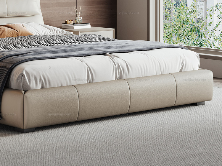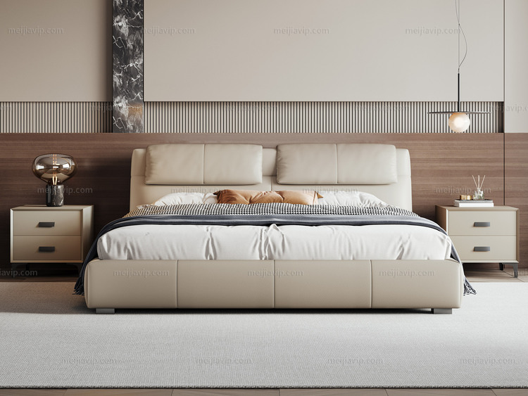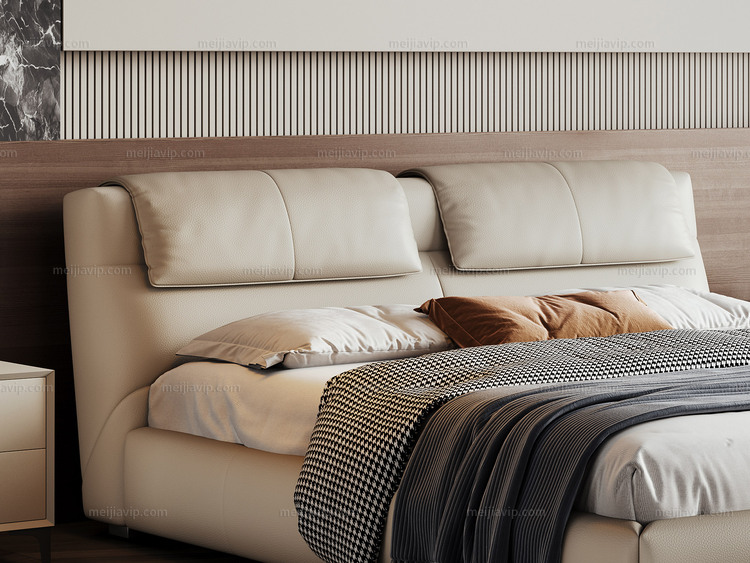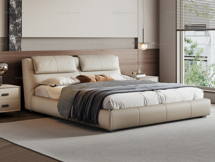 【1199】欧瑞仕 意式极简 菲尔岛床 色泽温润仿真皮 充盈羽绒填充云端靠感 人体工学呵护腰背不落空 高密度海绵 俄罗斯落叶松实木框架 1.82.0米卧室双人床(搭配10公分松木排骨架)