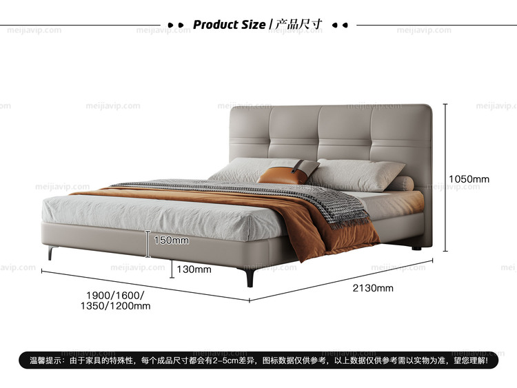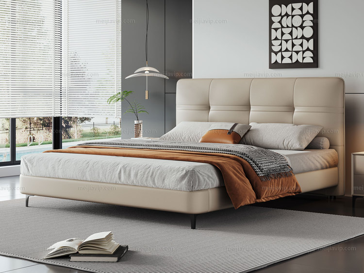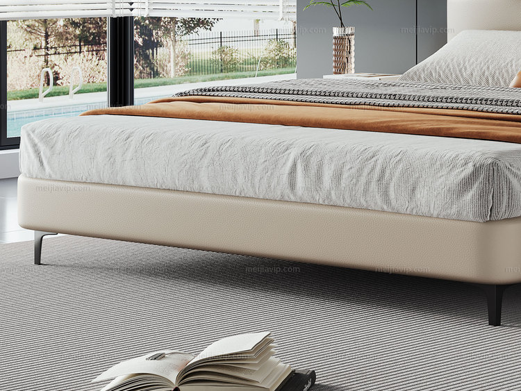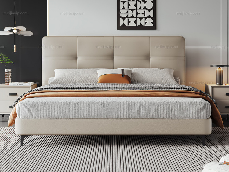 【1249】歌迪 极简风格 高定头层黄牛皮 黄金坐靠倾角顺脊护腰舒适承托 高密度海绵饱满有型软弹释压+5A级俄罗斯进口落叶松实木框架 三面齐边节省空间 1.82.0米 浅卡其 真皮床(搭配10公分松木排骨架)