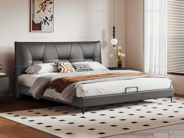 【1249】歌迪 极简风格 格子软包床 抗皱耐撕拉仿真皮 内柔外刚高回弹海绵 健康环保落叶松实木框架 奶油白1.82.0米床(搭配10公分松木排骨架)