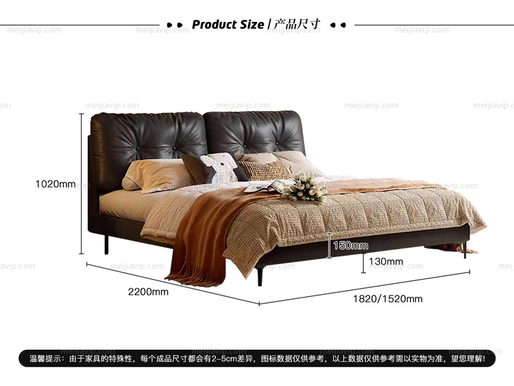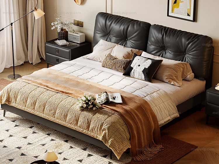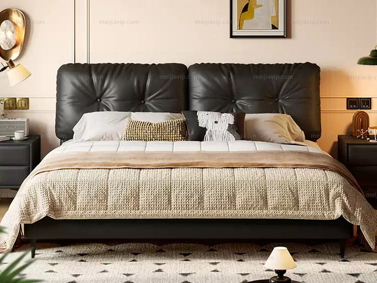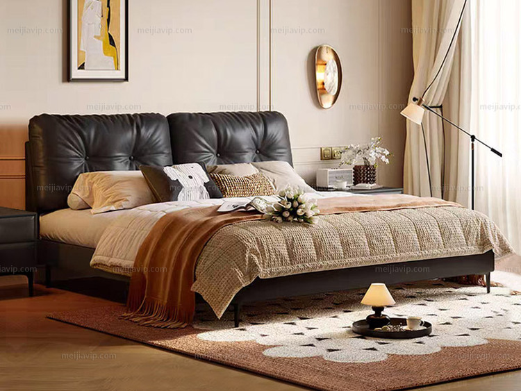 【1349】歌迪 极简风格 欧姆真皮床 高定头层黄牛皮 绵软轻盈高级羽绒+舒适回弹高密度海绵黄金配比宽大柔软床屏 蓬松软弹靠包全方位释压 云端靠感 齐边设计节省空间 1.82.0米真皮床(搭配10公分松木排骨架)