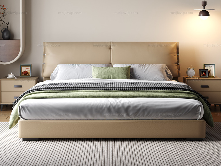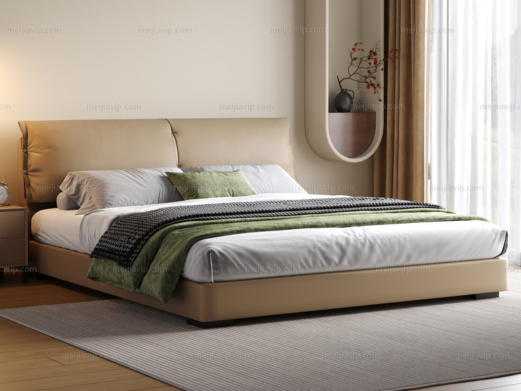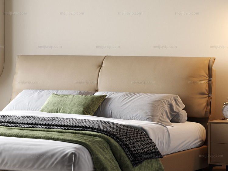【1399】欧瑞仕 意式极简 大象耳朵真皮床 豪奢大面积真皮床头 高定头层黄牛皮 时尚设计感异形拉扣 巨量蓬松羽绒+高密度海绵软弹大靠包 1.82.0米床(搭配10公分松木排骨架