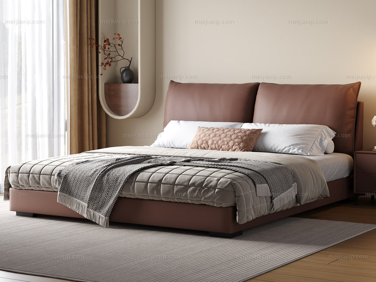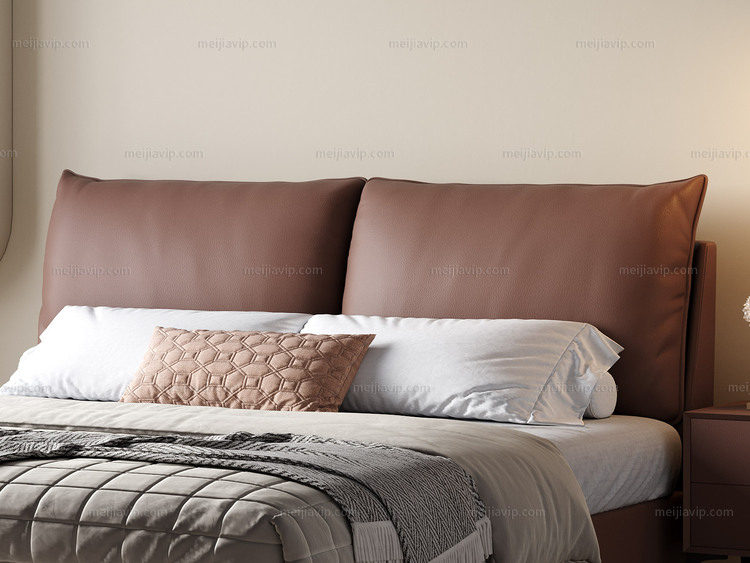 【1449】欧瑞仕 意式极简 高定头层黄牛皮 豪奢大面积真皮床头 巨量蓬松羽绒+高弹柔软海绵 独立双靠包 俄罗斯落叶松实木框架 1.82.0米床(搭配10公分松木排骨架)