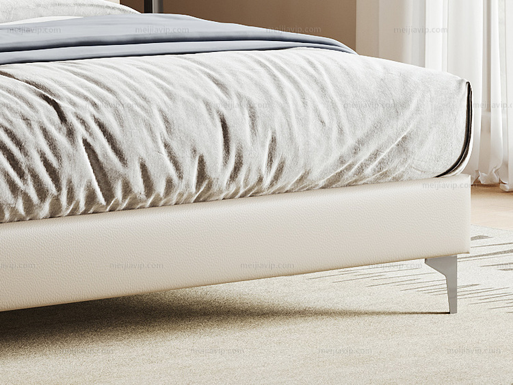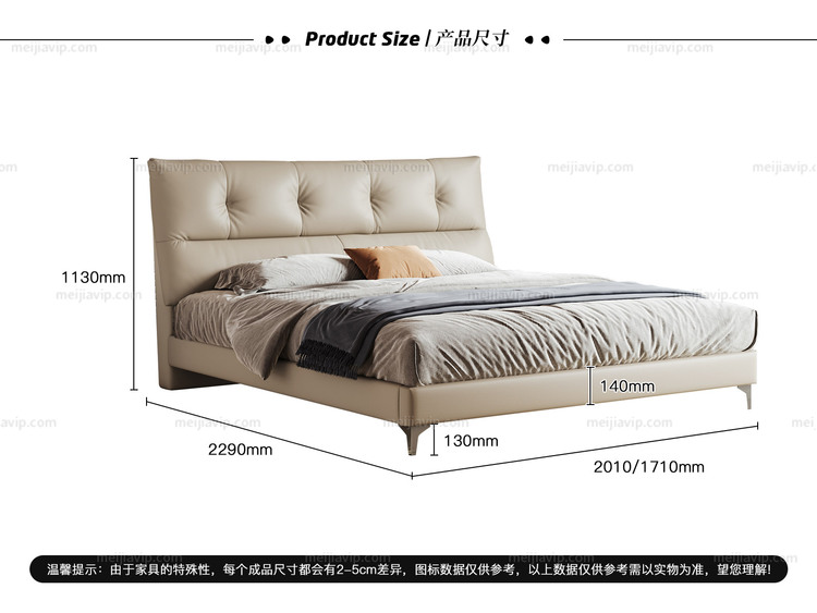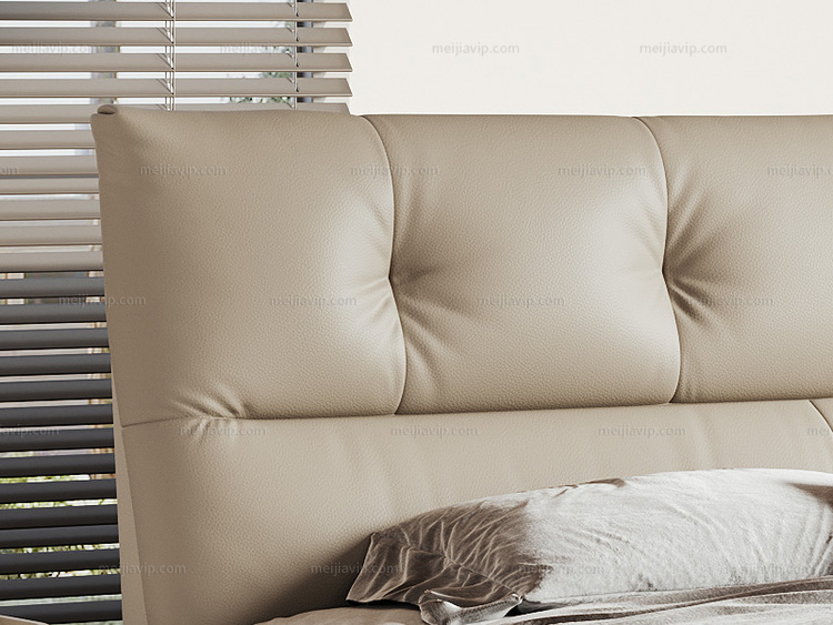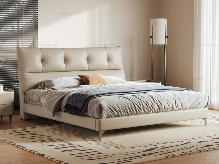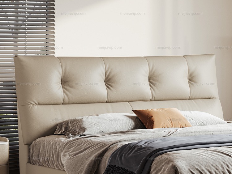 【1449】欧瑞仕 意式极简 塞浦路斯真皮床 高定头层黄牛皮豪奢三面真皮包裹床头 柔软蓬松羽绒分段靠包有力承托 匀称拉扣工艺 高密度回弹海绵 俄罗斯进口落叶松实木框架 米色 1.82.0米床(搭配10公分松木排冒架)