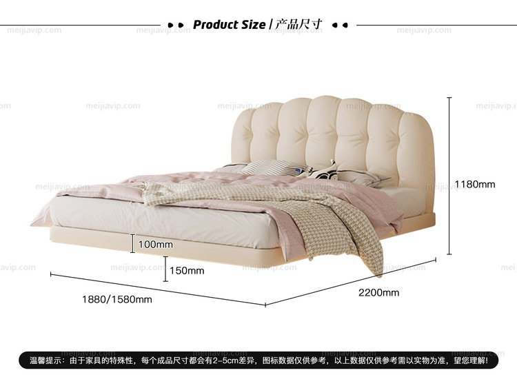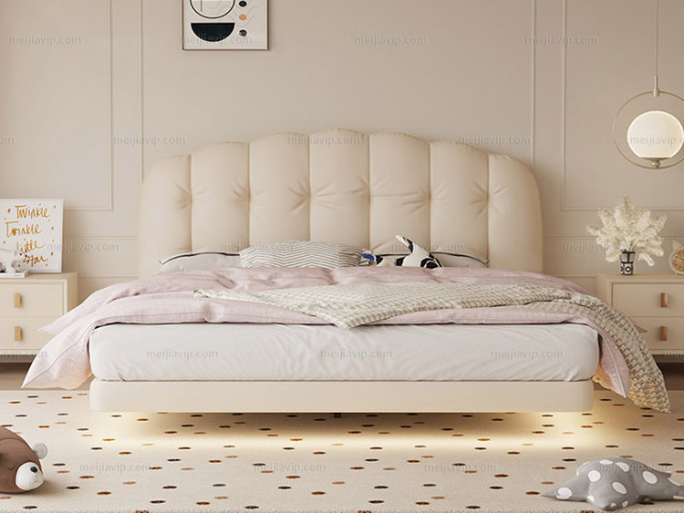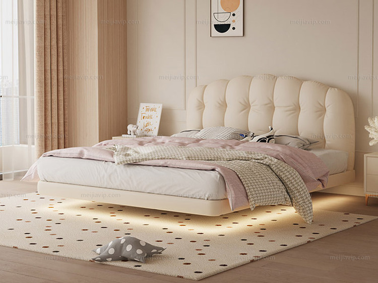 【1625】卡琪朵 奶油风 华夫饼造型床头 手感紧密细腻磨砂布进口俄罗斯落叶松框架 厚实饱满高回弹海绵 悬浮床1.82.0米床(建议床下预留电源插座)(搭配10公分松木排骨架)