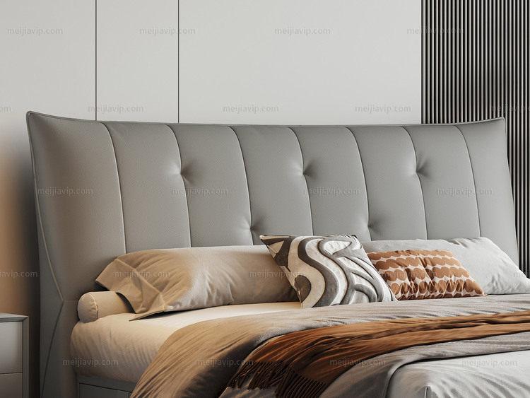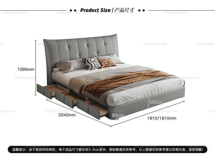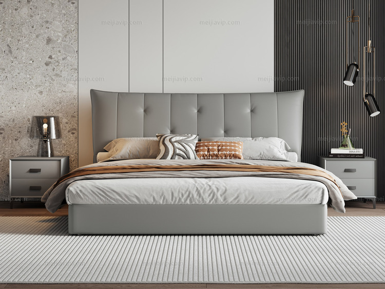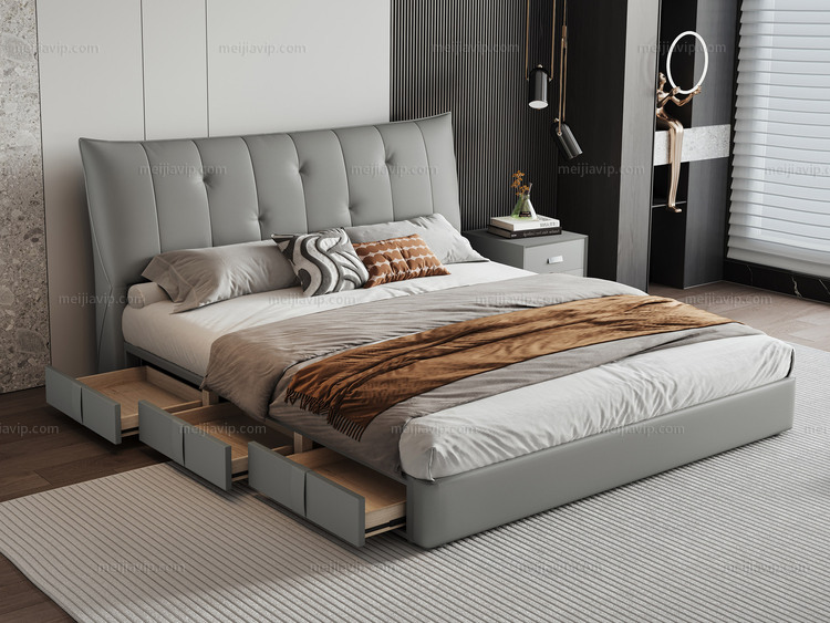 【1705】歌迪 极简风格 交错式拉点设计 进口头层黄牛皮 优质高回弹海绵 进口俄罗斯落叶松实木框架 灰绿色 左抽屉款 1.82.0米真皮床(搭配10公分松木排骨架)面向床抽屉在左)