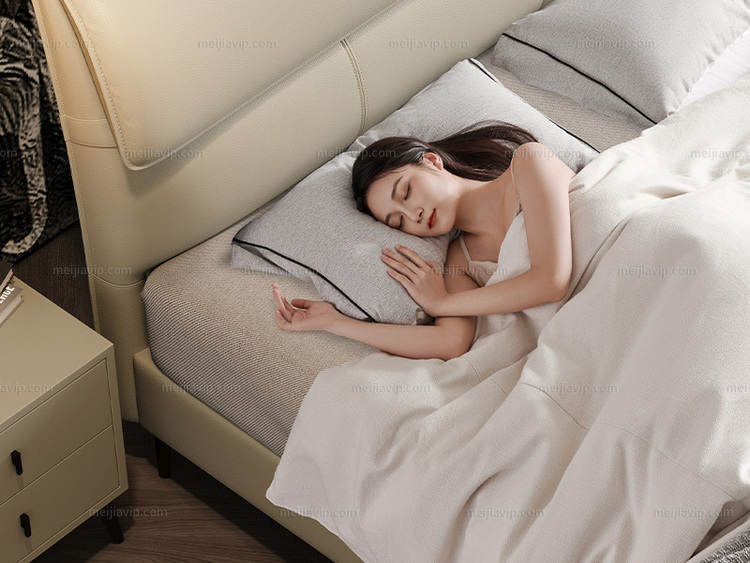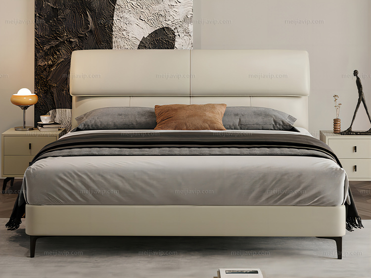 【1999】CBD 国际知名品牌 现代简约记忆信封真皮床 精选进口头层牛皮 手感软糯亲肤 优质高回弹海绵靠包 饱满充实 10cm钢木排骨架 稳固承重 灰羽白 (1.82.0米真皮床)(此产品有短途物流费)