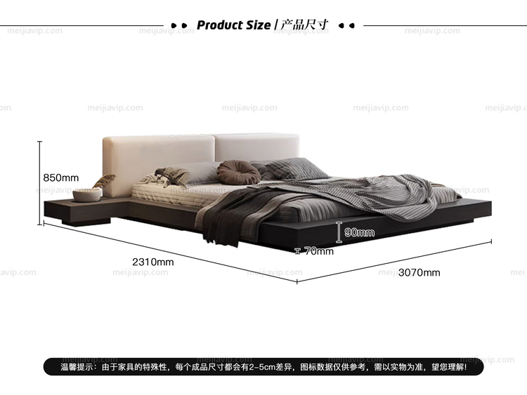 【2000】Milantti 米兰蒂 意式极简 榻榻米床 亲肤舒适棉麻布腾空悬浮感隐藏式床脚设计 床体大容量储物功能 精选高密度海绵 俄罗斯落叶松实木框架 1.82.0米床+床头柜2
