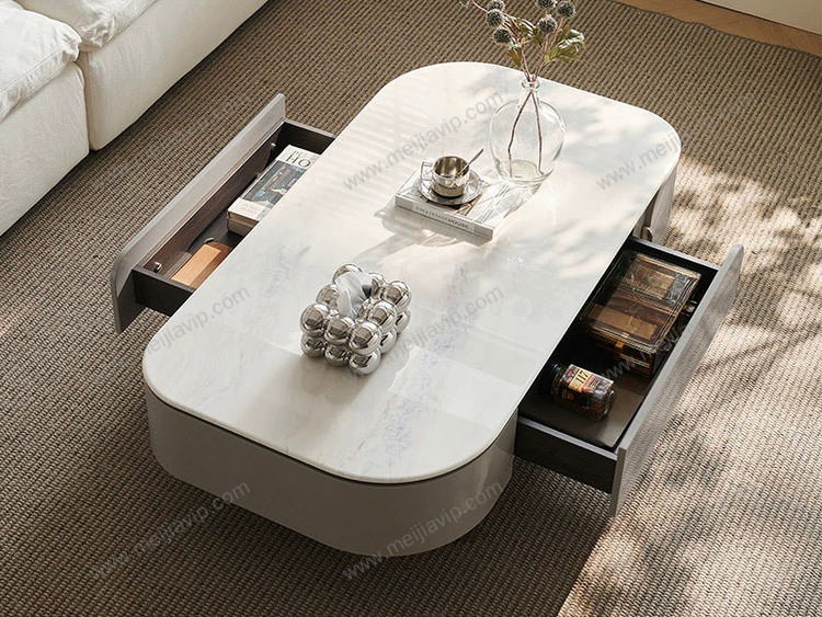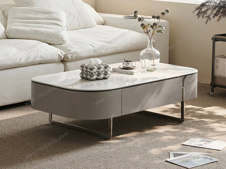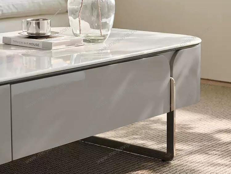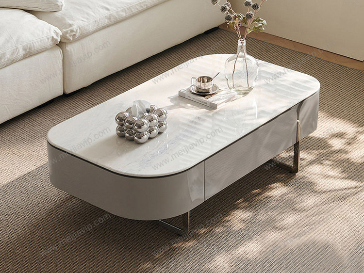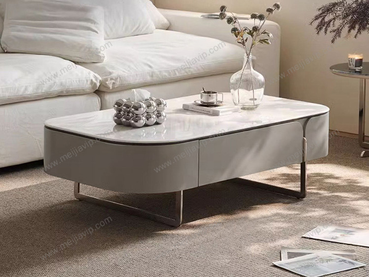 ¥1799.00欧瑞仕意式极简半夏茶几纹理通透微晶石圆润灵动造型双面两抽大容量储物嵌入式不锈钢有力承托高脚设计易清洁茶几