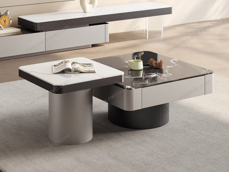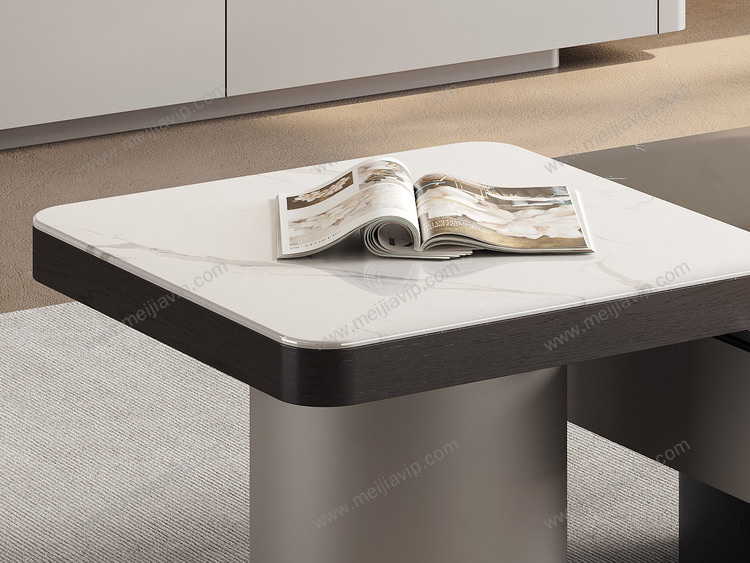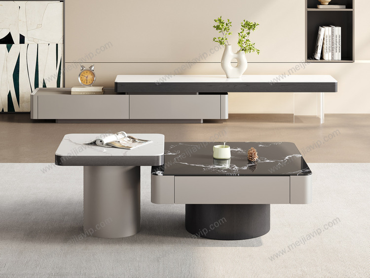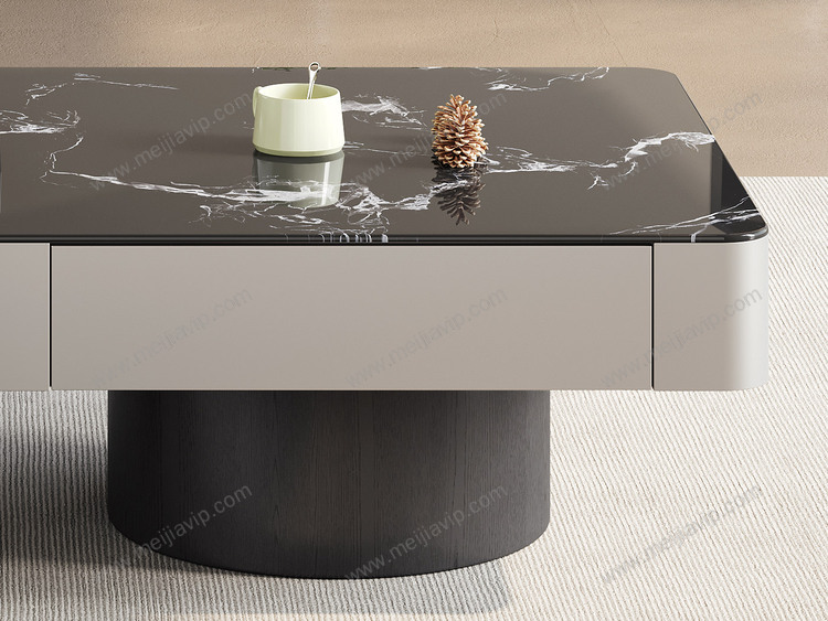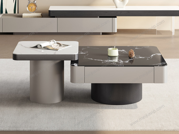 ¥1999.00诺美帝斯极简风格优雅黑玫瑰微晶石茶几+白兰玉微晶石角几设计感拼色组合纹理自然红橡木皮高质感金属烤漆茶几组合