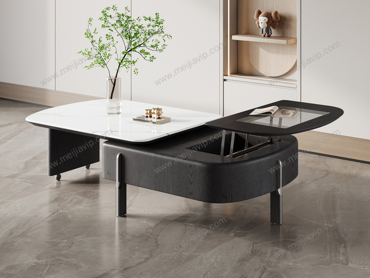 ¥2049.00歌迪极简风格旋转升降功能茶几晶莹柔润微晶石自由旋转设计随心收纳通透钢化玻璃可升降高强承重五金脚功能茶几
