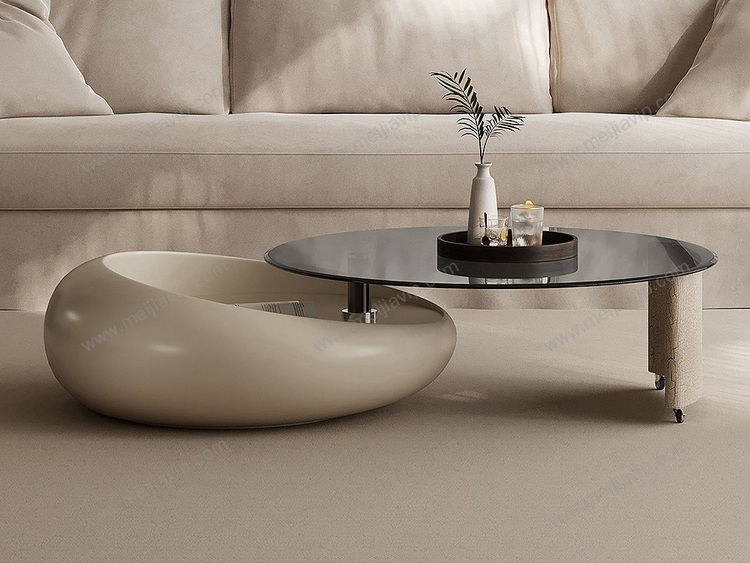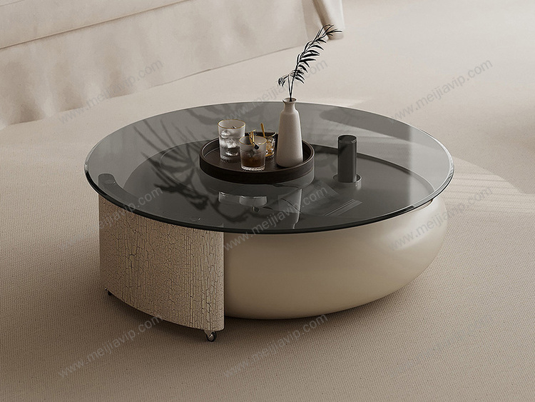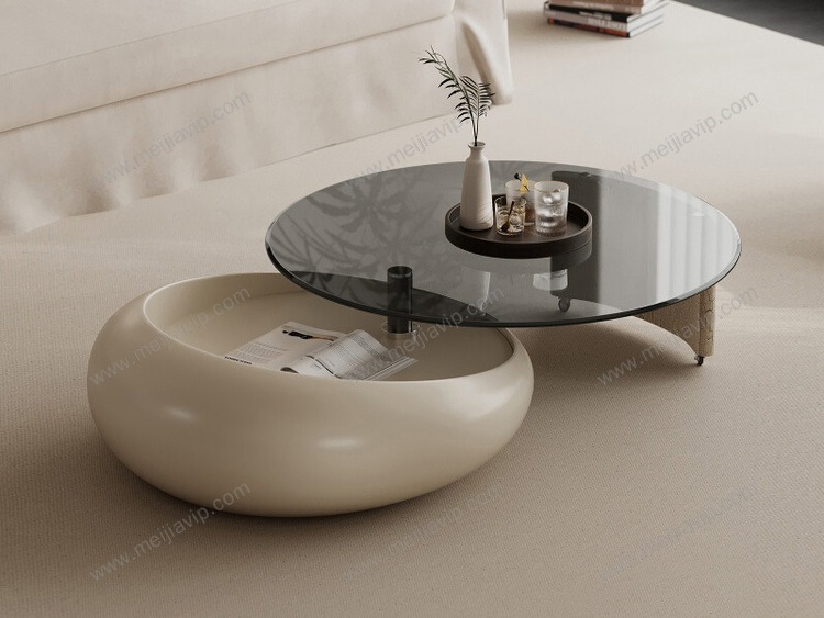 ¥2449.00欧瑞仕意式极简旋影茶几可伸缩台面小户型专属设计可360°旋转柜体自然裂变纹支撑腿通透亮丽钢化玻璃茶几(标配灰色玻璃)