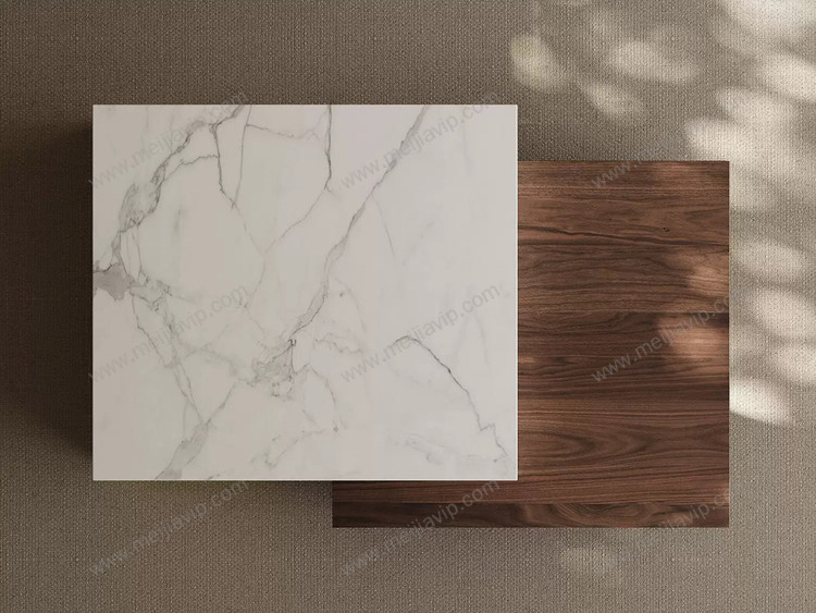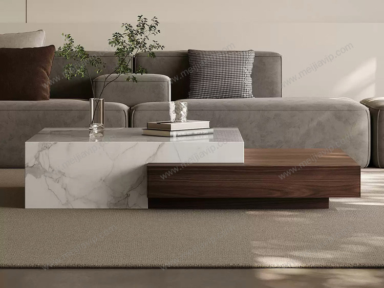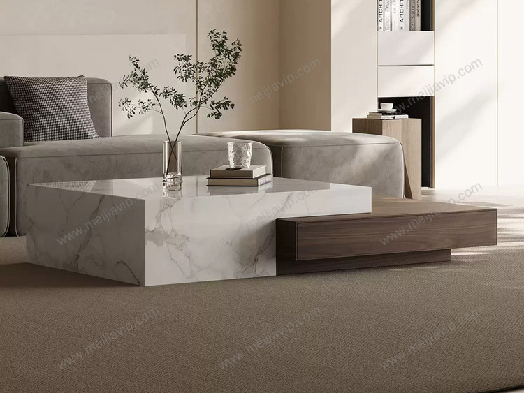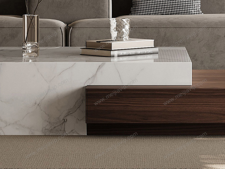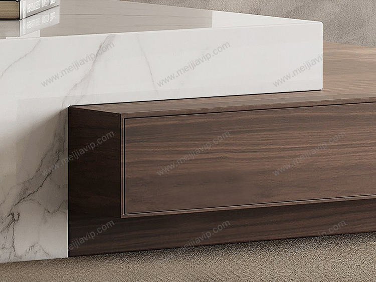 ¥2499.00欧瑞仕意式极简几米茶几素雅雪山白大理石+木纹高颜值混搭设计实木双抽大容易储物静音防夹手缓冲导轨茶几组合